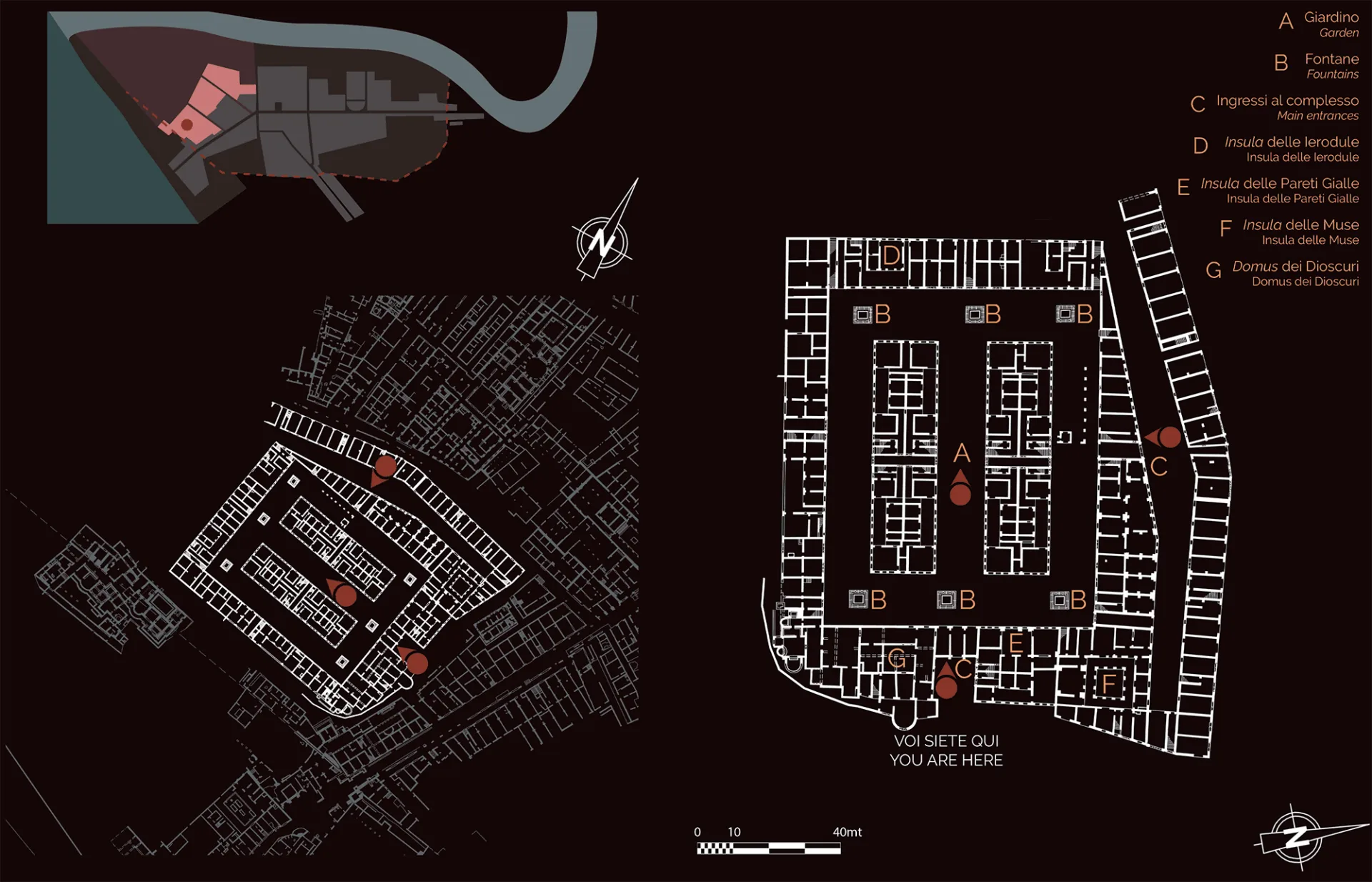 The Case a Giardino (Garden Houses), built in around AD 130 as part of a vast construction project, had a mainly residential function though they also included commercial and service spaces.