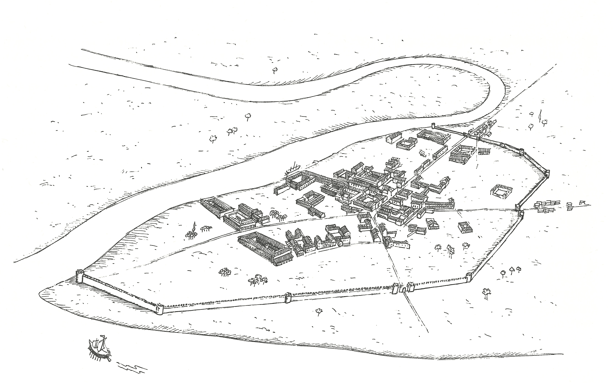 The gate in the Republican walls, built in around the mid-1st century BC, marks the entrance into the city from the Via Laurentina, an ancient road leading from Laurentum (a town in Lazio south of Rome); the stretch of road inside the city was Ostia’s Cardo Maximus.