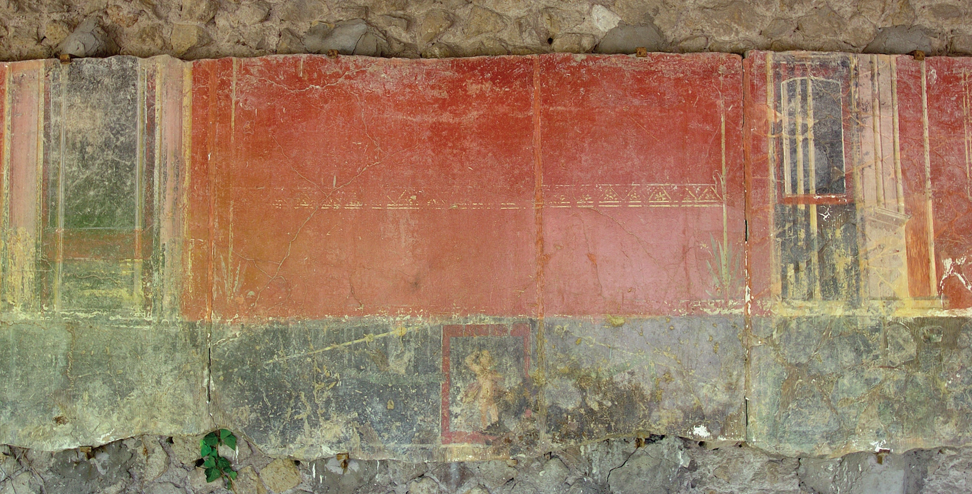 The sanctuary had a portico (F) with wall paintings in which some small rooms were installed in the late 2nd century AD.