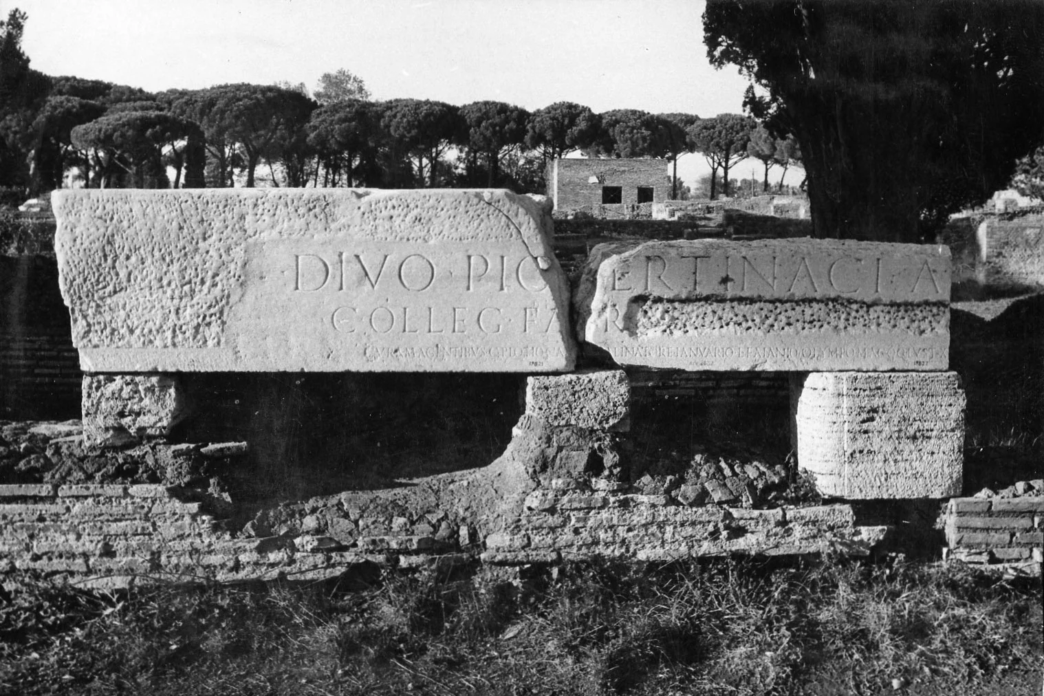 The temple was dedicated to the emperor Pertinax (AD 193), who was deified after his death, and was erected by the guild of the fabri tignuarii (builders), as we read in the inscription displayed on the opposite side of the Decumanus. The building had a brick cella and stood on a tall hollow podium in which votive offerings were kept.