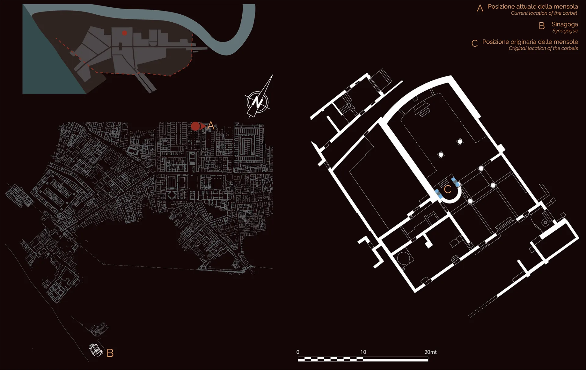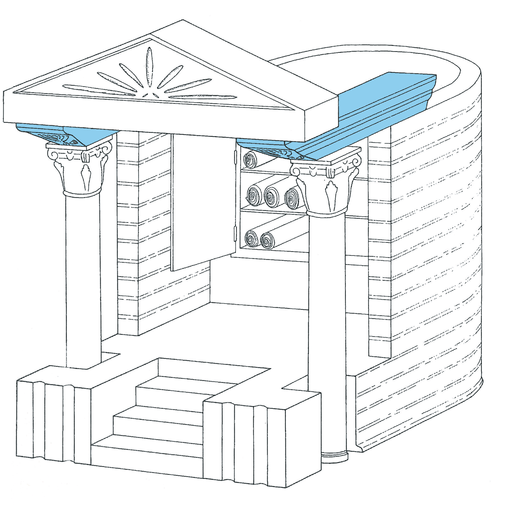 This marble corbel is one of two that originally decorated the shrine in Ostia’s Synagogue holding the ark in which the scrolls of the Law (Torah) were kept; the construction of this shrine is mentioned by a Greek inscription commemorating an individual who paid for a container to hold the sacred scrolls.