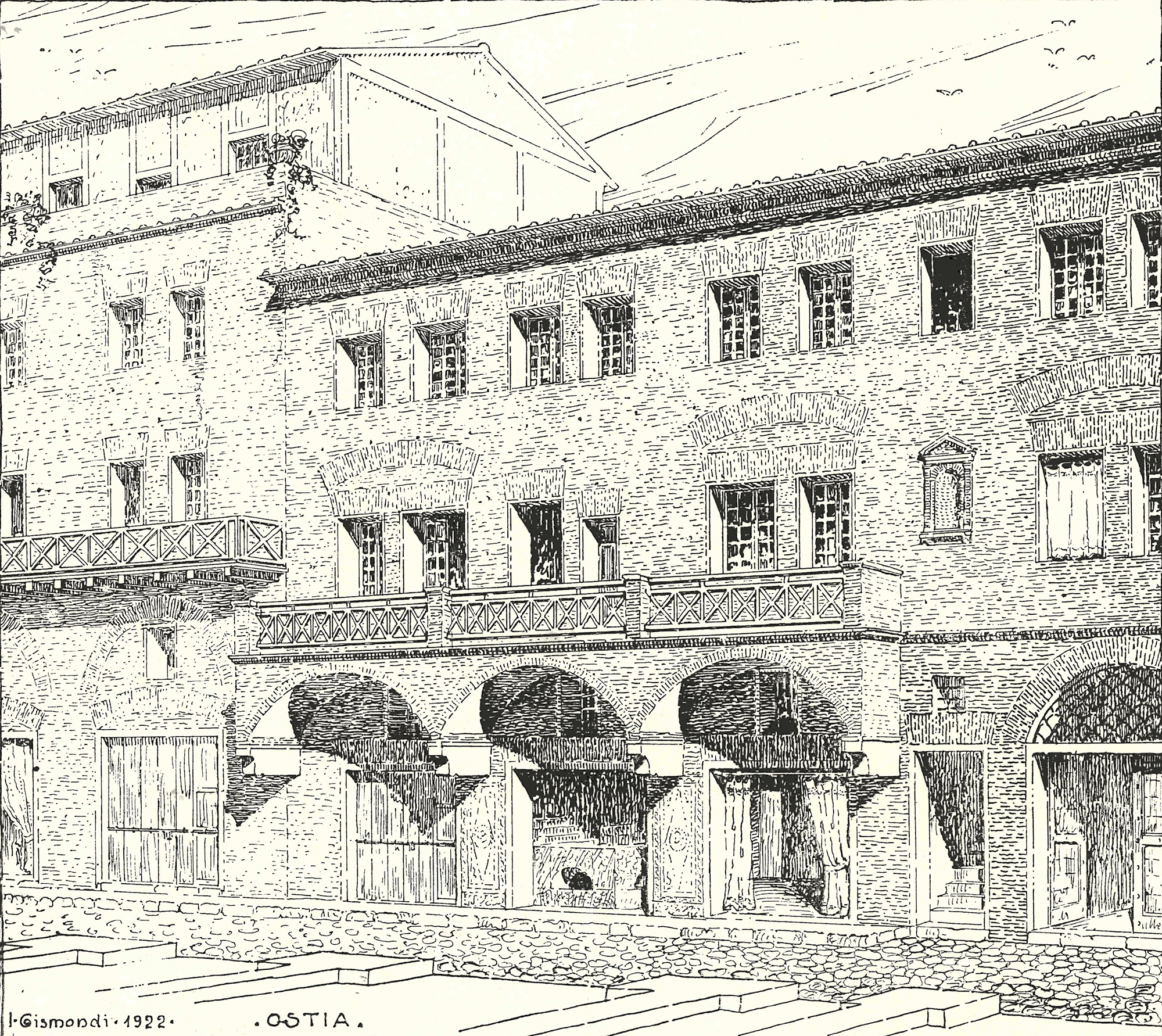 It opened onto the street with three entrances, provided with seats and covered by balconies resting on brackets.
